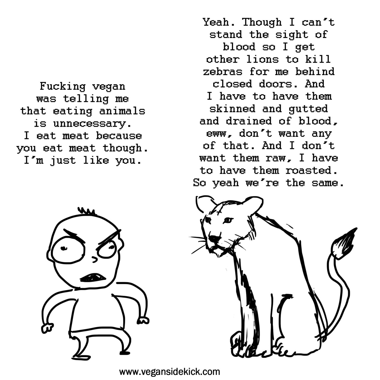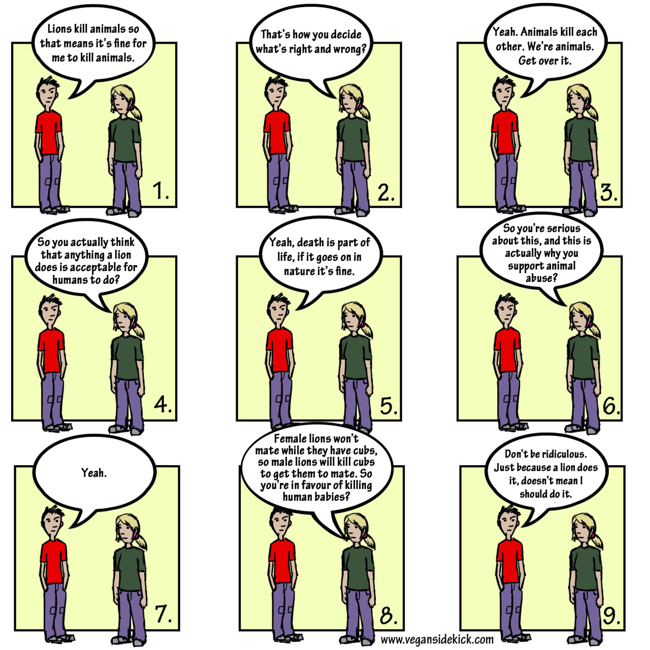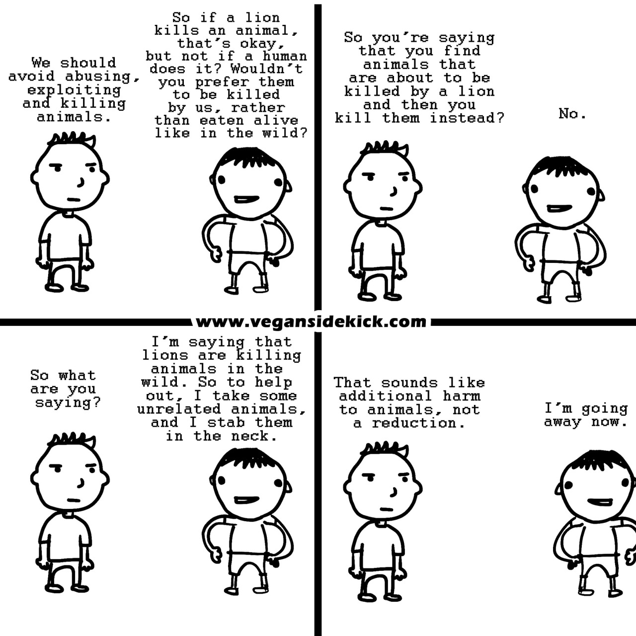 For myself, I'm very interested in the question of whether it's immoral for humans to kill non-humans, which is why I engage these conversations so enthusiastically. I'm keen to find out what other people think about such topics, and to discover if there's some flaw in my reasoning on this. However, for the reasons just described, it seems as though the actions of a lion have very little applicability to that conversation.