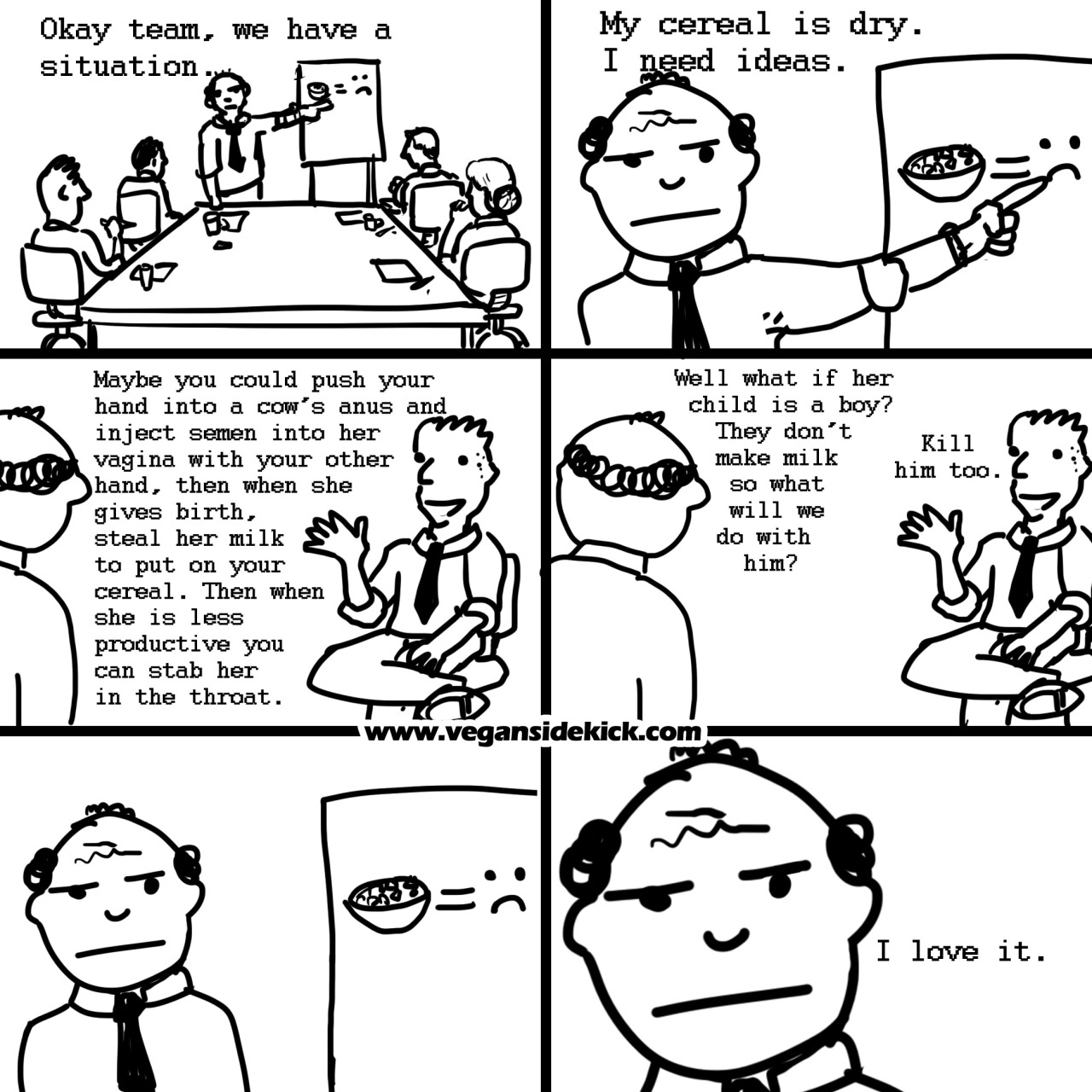 If you will bear with me a moment, let's consider the "trade" we're forcing on these beings, and I'll do so assuming the best possible environment for the life of a dairy cow (as the vast majority have a great deal more suffering involved then what I'm about to cover):