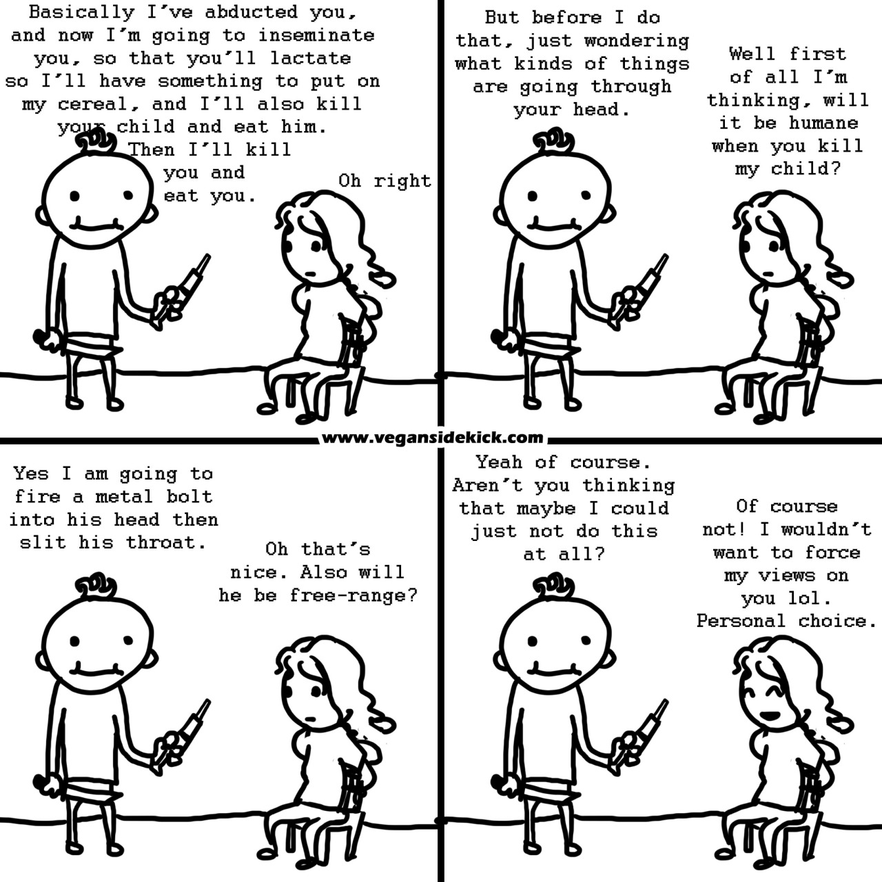 Eating meat is a personal choice just like being vegan is a personal choice, so everyone should just live and let live.