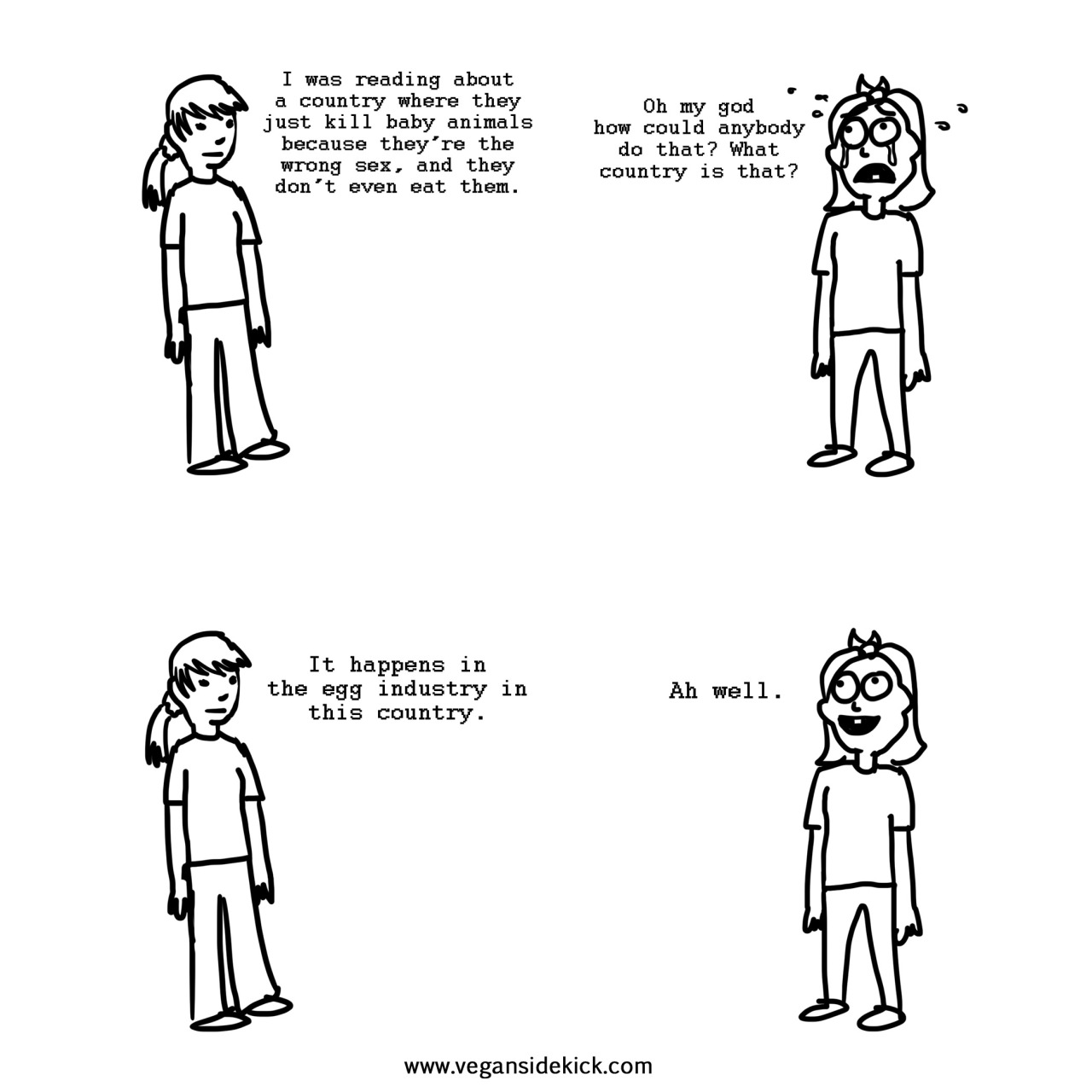 Withal, +Chicken Little, it's hard for me to see how eggs can be thought of as anything but cruel, you know?