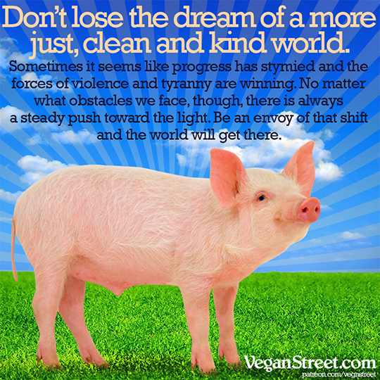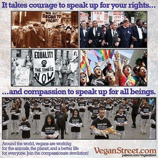 "Vegan restaurants, cafes and stores are popping up all over my city and around the world. More vegan substitutes are available than ever before. Animal rights awareness is growing rapidly. Mainstream media is starting to promote veganism."