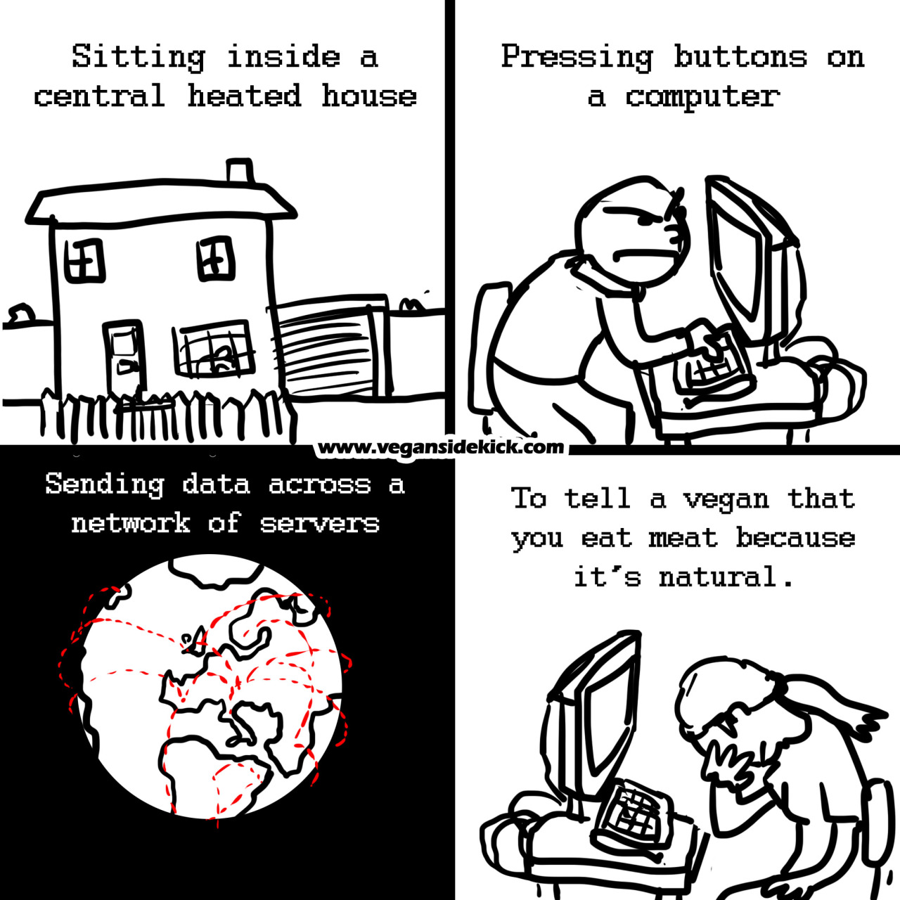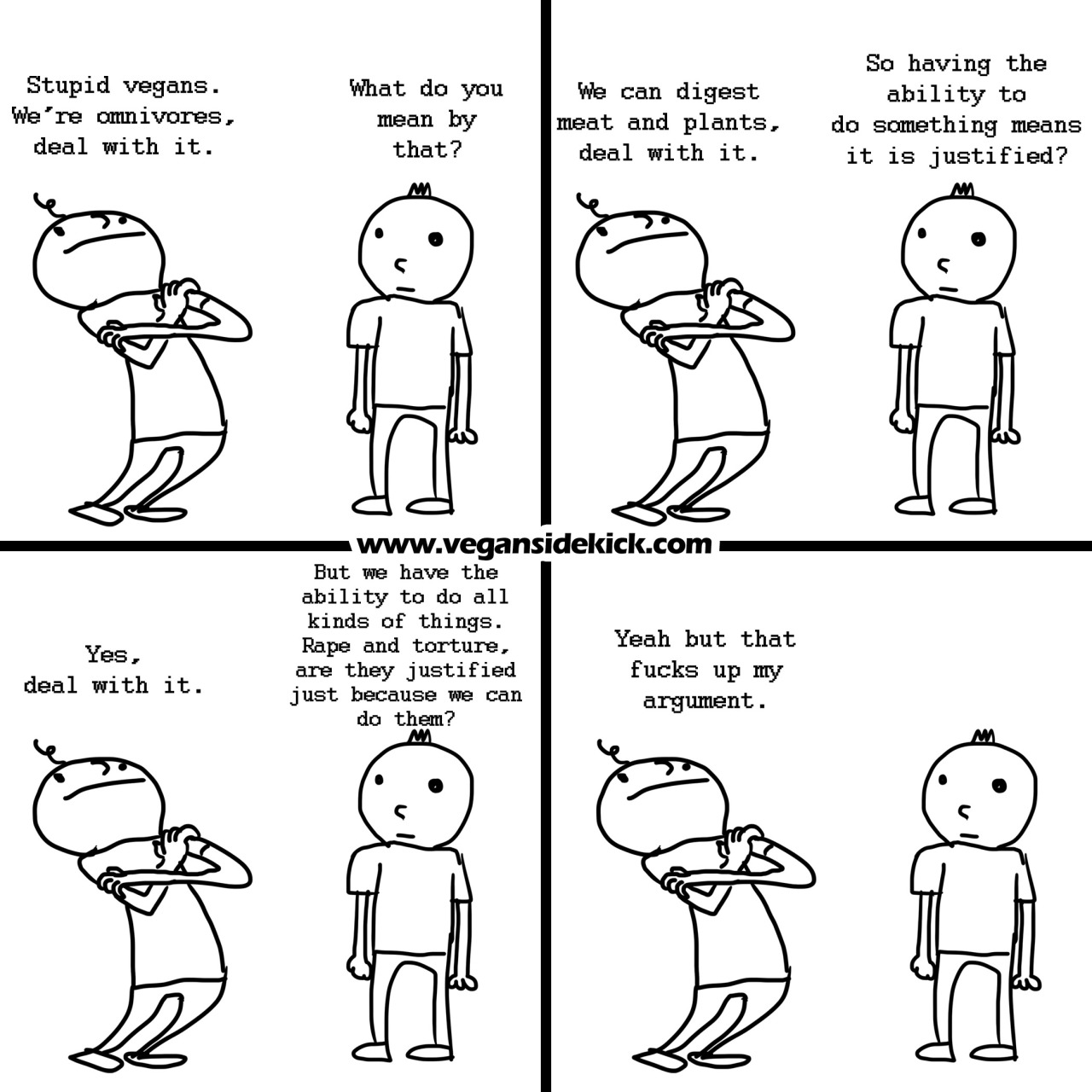It's a nonsensical argument that proves nothing, and since it's so very rarely an argument that resonates with necrovores, then trying so hard to prove this point isn't effective advocacy and doesn't save the lives of animals.
