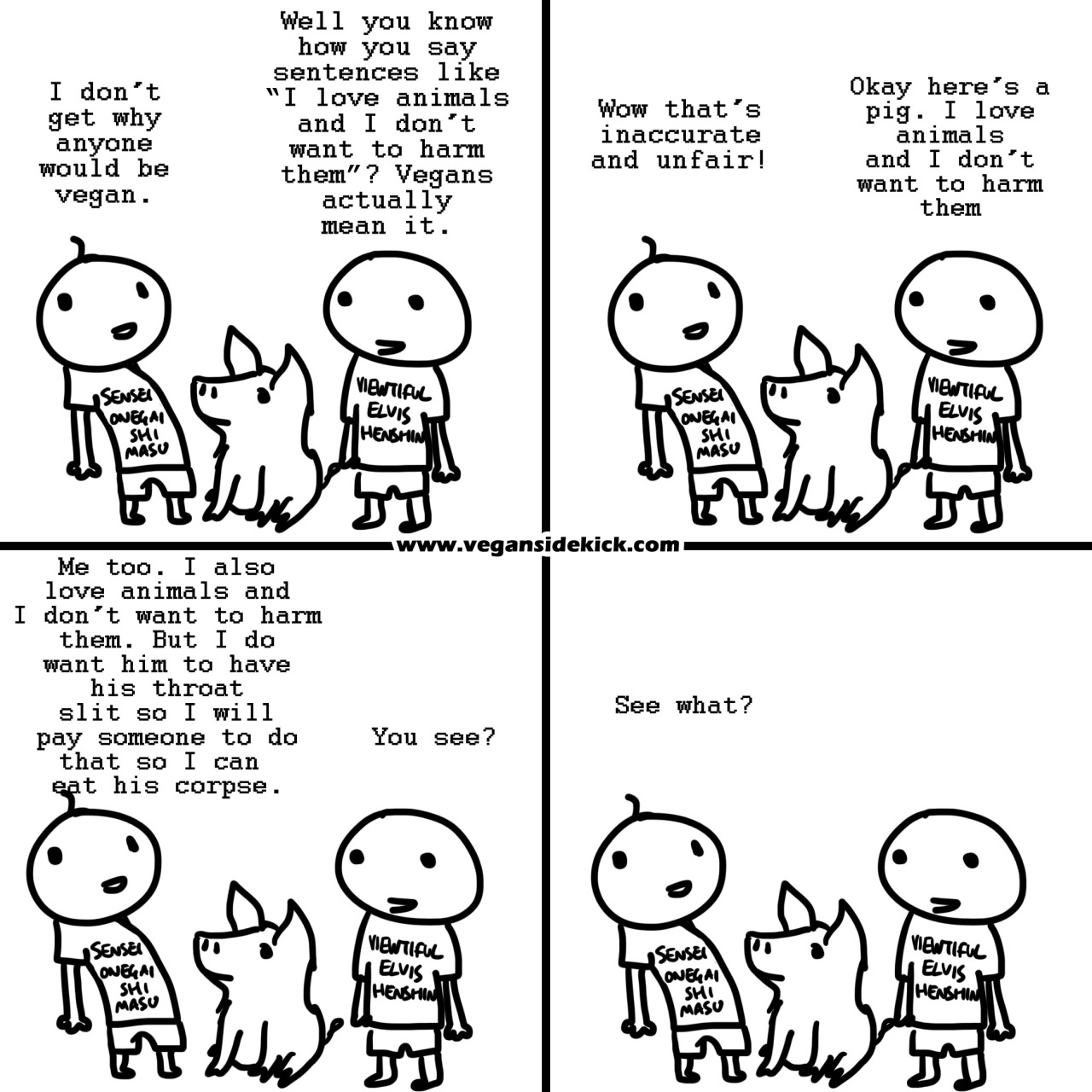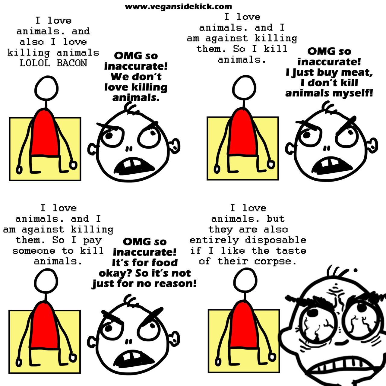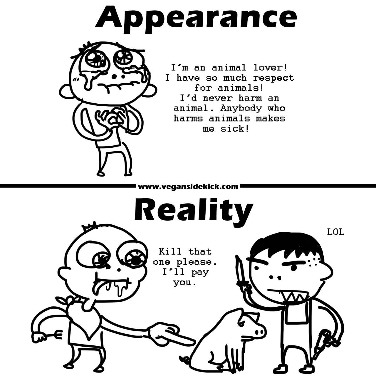 ""Animal lovers" who eat meat are really just some-animal-lovers. They love the "cute" animals, the "pretty" animals... the animals society deems deserving of love, i.e. dogs, cats, and bunnies."