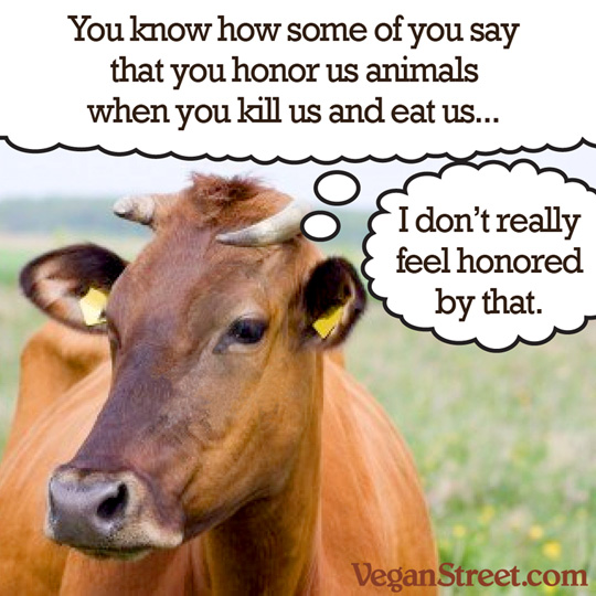 I honor the animals I eat with my hunting practices, or my farming practices, or by simply understanding that I am eating sentient beings who sacrificed their lives so that I may continue to live.