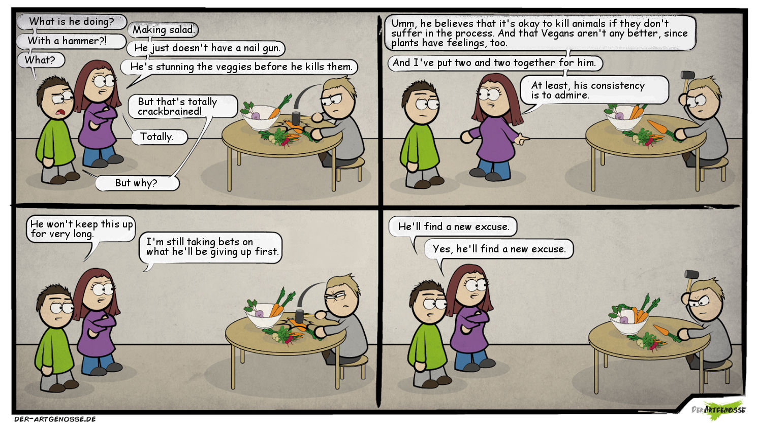 Vegan vegan plants plants… Yeah yeah… But, playing Devil’s advocate, why should I value animals more than plants? Because, eating plants is not the same as eating animals, and here’s why: